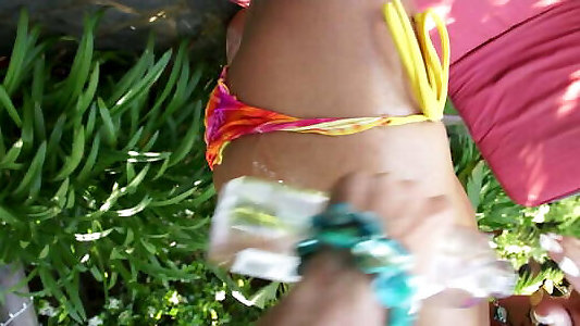 Sizzling bathing suit honies pulverizing 3 way outdoor