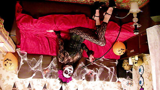 mother-in-law licks my swollen balls and I jerk off my cock and cum in her mouth and on her face