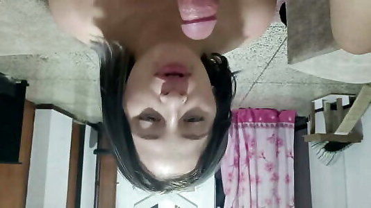 stepmom blowjob stret asian jerking off my penis, I cum in her mouth