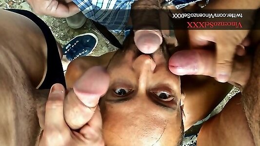 Cuckolds Cougar wife with 2 Bbc bulls Jizzed all over He clean
