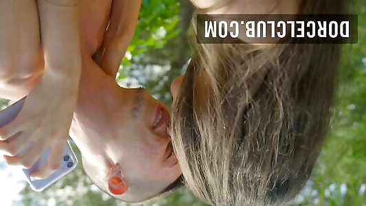 Skinny redhead trembles as her cunt is stimulated the right way against a fence