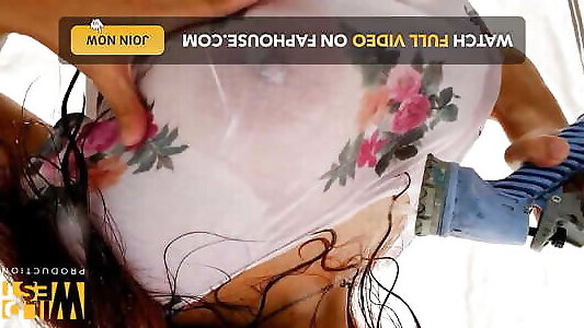 Lily LaBeau wets her t tee-shirt and gets her melons massaged and slurped