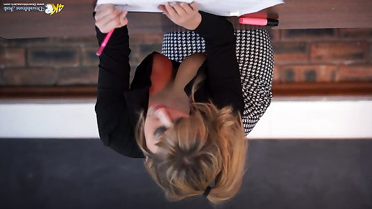 Incredible red haired secretary Dolly displays her juicy bra-stuffers
