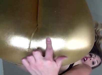 Super-steamy ash-blonde with GOLDEN spandex pants shows off bootie