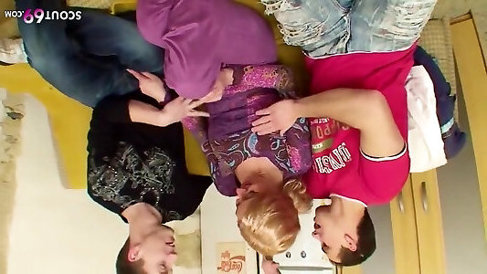 Two Young Dudes Seduce Bony Mature To Assfucking And Double Penetration Poke