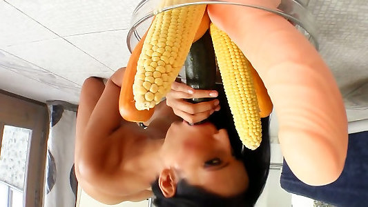 Ultra-kinky dark-haired damsel xxx bf vidio fuck slams her backside crevice with an ear of corn
