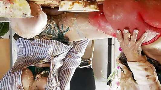 Tina Kay delectations her hubby in the kitchen