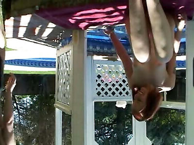 Masha Korjagina lifts her gams and opens up them
