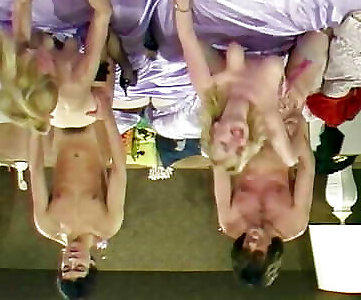 Kinky platinum-blonde and brunette honies watching their boyfriends have hook-up