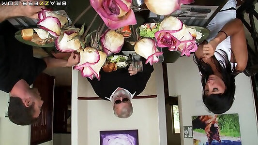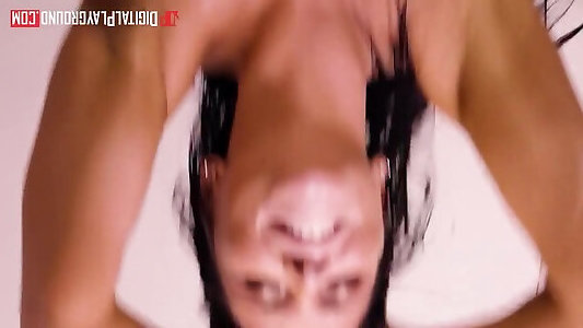 Dark Haired cougar Monica Santhiago gargles hard-on and submits her arsehole for smashing