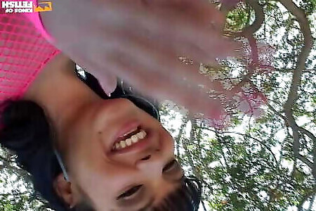 Junge Asiatin massiert sich vor der Kamera die Slit und geht zum Ficken in die Natur