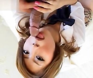 StayHomePOV - Super-cute Asian With Pigtails Deep Throats Off Her Roomy