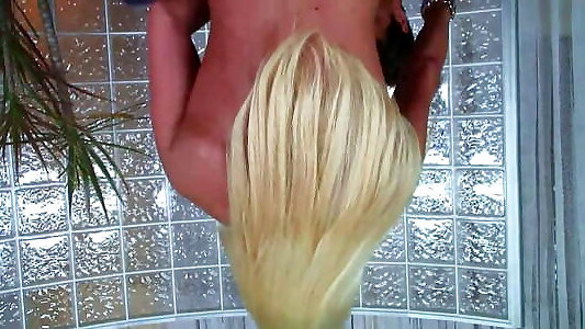A busty blonde cameroon dee blonde from Germany playing with a small dong