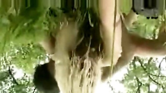 Bare tourist Sandra Parker rides her guides spunk-pump in the forest