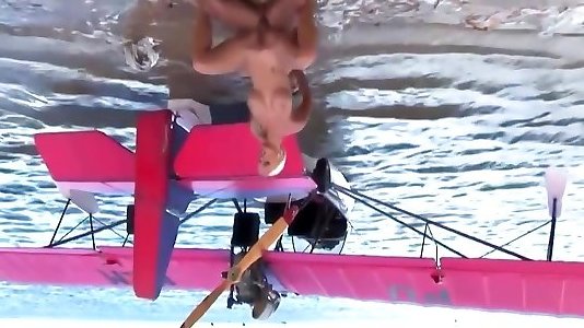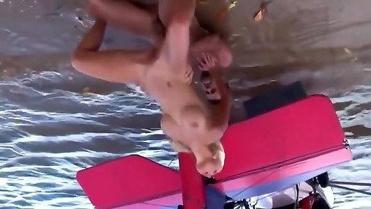 Tempting, light-haired damsel with massive, rock hard cupcakes, Caylian full bladder per got humped on the beach and munched cum