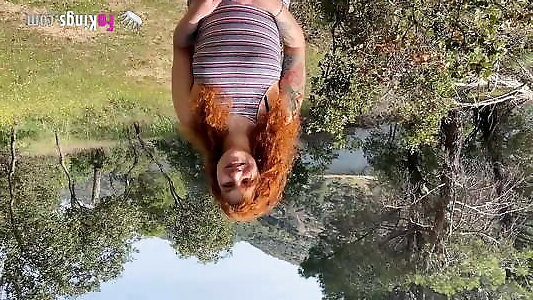 My unshaved wifey walking bare in the front yard for a worker to observe