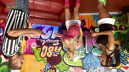 Nutting all over those huge fake fun bags as they tear up like 2 bunnies