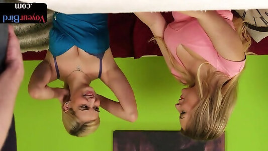 CFNM 3way BJ and HJ on the bed by femdom amateur MILFS