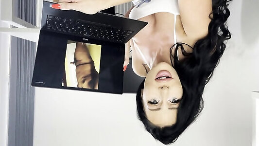 Huge-chested sister bhother sex dominatrix abjecting through cam while demonstrating assets