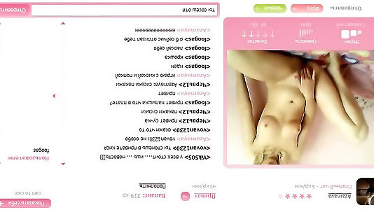 Webcam lady shows striptease in private chat. Fingering shaved pink pussy with two fingers in black stockings