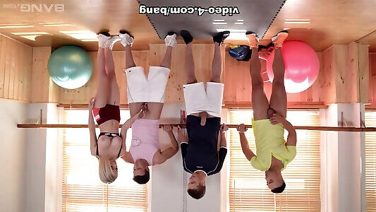 Hefty tittied fitness gal Chessie Kay is face boned by several studs at the gym