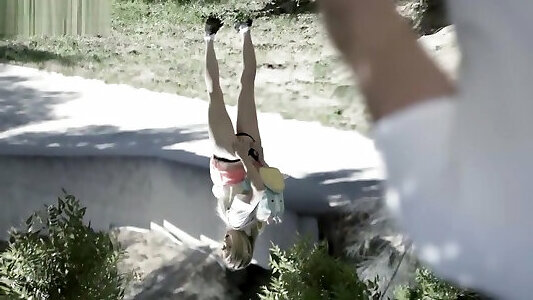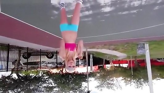 Outdoor Pool Chloe Foster Juggles Belt Cock On His Bulls Eye