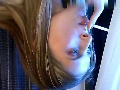 I Smoke a Cigarette and Cute Girl Sucks My Cock - Licks Balls and Tastes My Cum