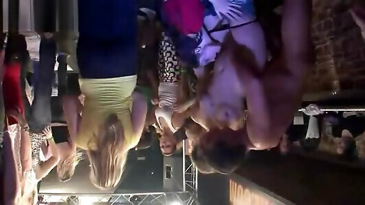 Chubby pigtailed teen smokes a cigarette while dressed in tiny bikini, striptease