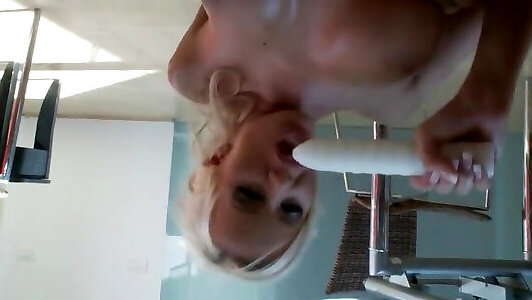 Mature blonde tube firest time fucks herself with sex toy in the kitchen