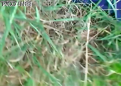 Mature breezy Janna gets naked and wanks honeypot in the garden