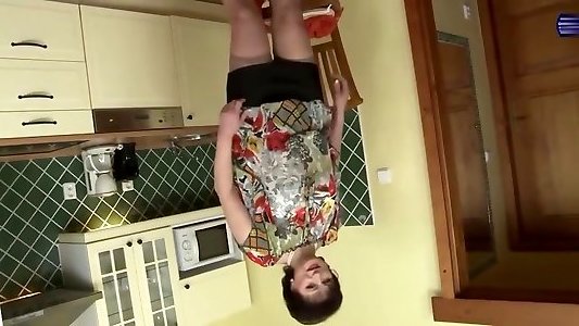 Perverted UK nymphomaniac leans over kitchen room sexy unsheathes her jiggly arse wwwmast xxxcom shaved honeypot