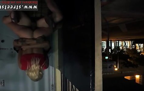 Super huge-titted blonde Cristi Ann displays knockers outdoor and gets pulverized in her donk fuck hole