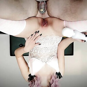 Hotwife Sissy hubby jerking off witnessing her pummeled by Bbc