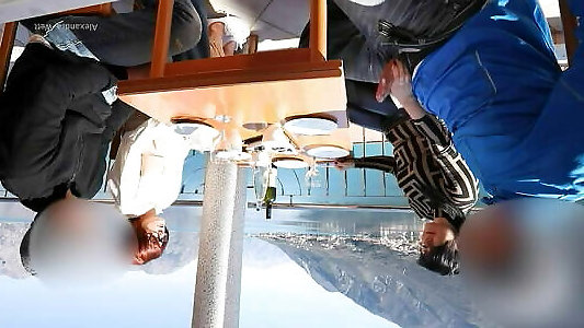 Puny platinum-blonde honey guzzles tourist jizz after salami deepthroating