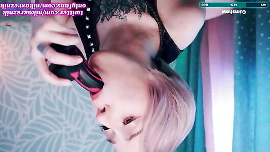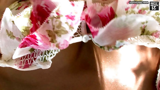 Adorable naughty teen dancing nude, inhaling fucktoy and kneading love button