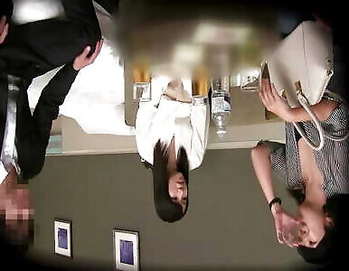 Brunette Japanese Gets Her Bush Licked and Fucked with Toys by Two Men