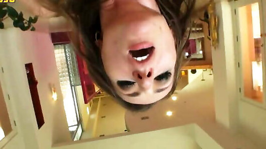 Cute blondie drools all over a huge dick hanging upside down while facefucked