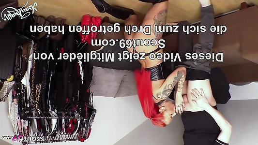 Devote Sklavin in rotem Spandex wird zur Schlampe erzogen