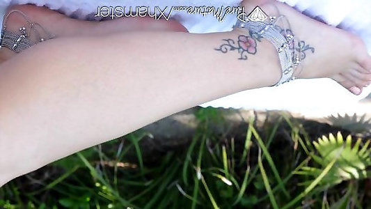 All Natural Big Tits Big Ass Hot Brunette Babe Mutually Masturbates with a Big Cock Guy in a Sheer Dress No Panties