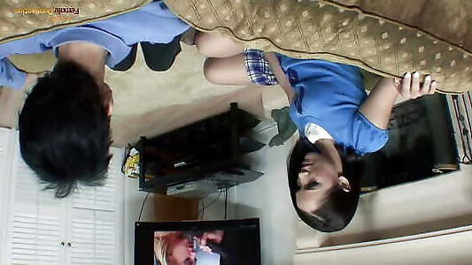 Creepy Stepparent loves seeing Japanese porno while frigging her
