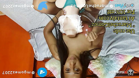 Skinny 18 year old Colombian babe lets her cuckold boyfriend fuck a TANTALY doll and cum in her mouth! Aishadanveer