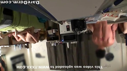 First-timer college damsels sharing boyfriends in the dorm bedroom
