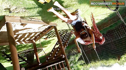 Naughty African Honies Demonstrate Breasts For Real Sapphic Three-way After Jungle Rave