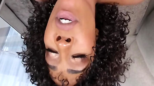 Extreme deep throat, wiggling her wet mouth on cock
