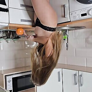 Super Hot titillating doll dances in the kitchen in softcore underwear
