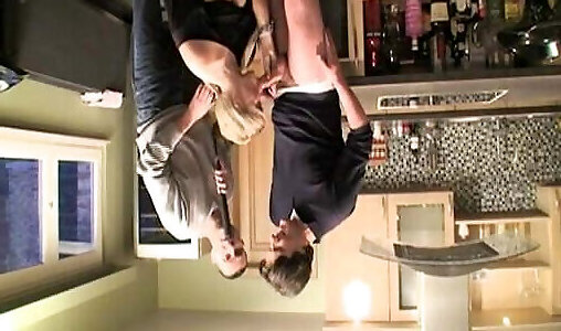 Ash-blonde cockslut rides the trouser snake in kitchen!