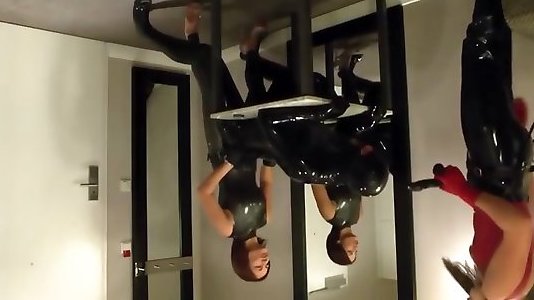 2 Glamorous European Damsels Take Turns Strapon Smashing Slave
