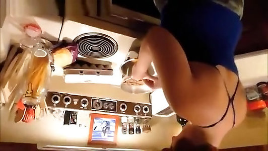 Enormous culo wife cooking in thong