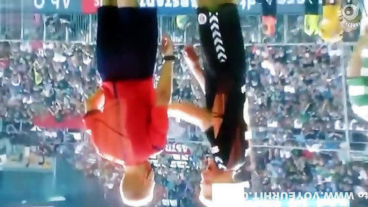 2 towheaded bombshells get humped really hard in front of an audience