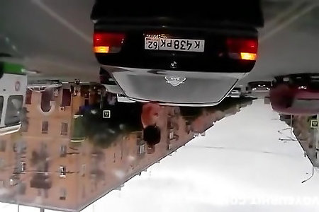 Without Bra babe railing in a BMW while in Russia